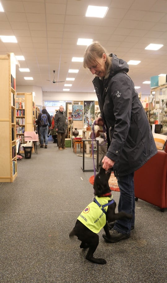 23 december 2023. Als dank voor een donatie van €1000,- uit de Goede-Doelen-Pot van onze Kringloop bezoekt Vom Falorie die hulphonden opleidt voor mensen met psychiatrische problemen onze kringloopwinkel in Huizen. Kijk voor meer informatie over Stichting Vom Falorie-Hulphonden op de website: www.psychiatrischehulphond.nl.